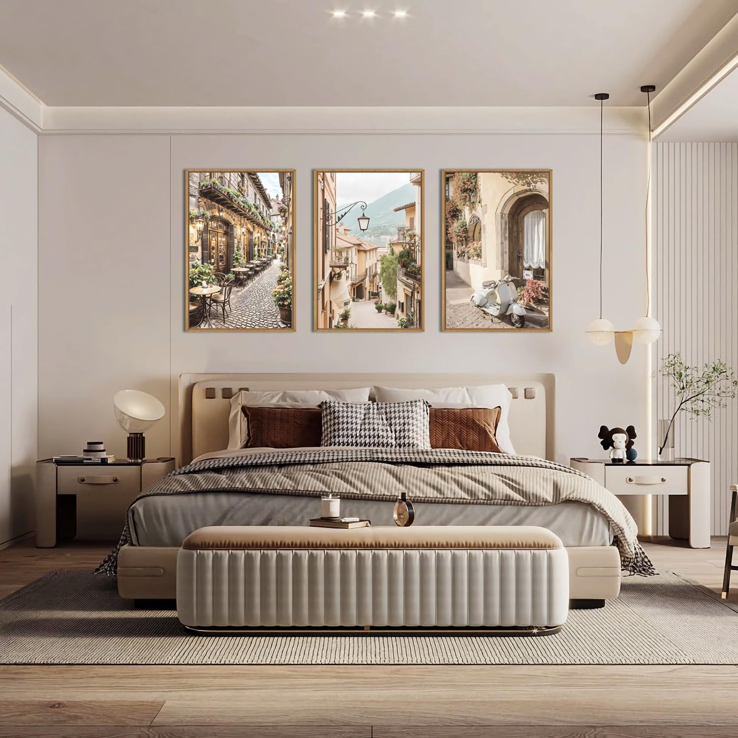 HPINUB Foreign Scenery Framed Canvas Wall Art Set,Vintage Travel City Wall Decor,Modern Minimalist Europe Street Picture Artwork Nature Landscape Art Print for Living Room,Bedroom-24 x36 x3