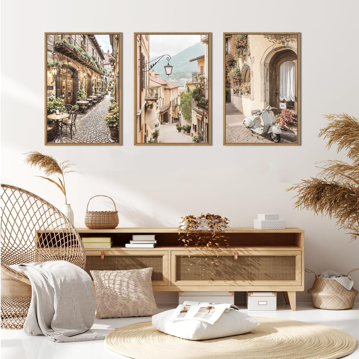 - 【Foreign Scenery Wall Art】 The size of the European countryside landscape framed canvas wall art set is: 24x36 inch x3 pcs (60x90 cm x3 pcs). The modern European architecture prints artwork uses high-quality environmentally friendly ink and high-quality canvas, and employs the industry's top printers for layered spraying. The colors are delicate and the transition is natural, bringing you visual enjoyment.
