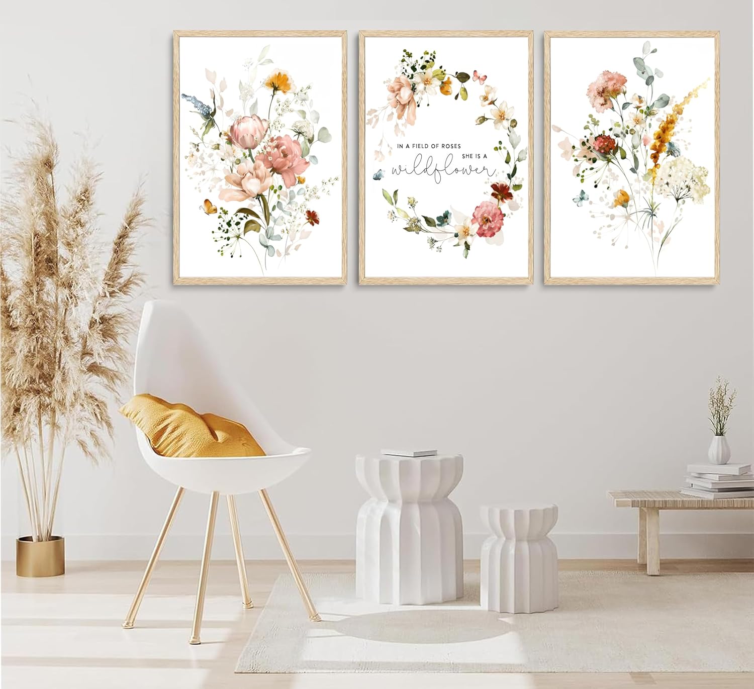 - 【Perfect for Various Spaces 】:This set of three wildflower art prints is versatile, ideal for enhancing the aesthetic of living rooms, bedrooms, and bathrooms. Whether you want to create a calming ambiance in your bathroom or add a burst of color to your bedroom, these watercolor flower paintings are a perfect fit.