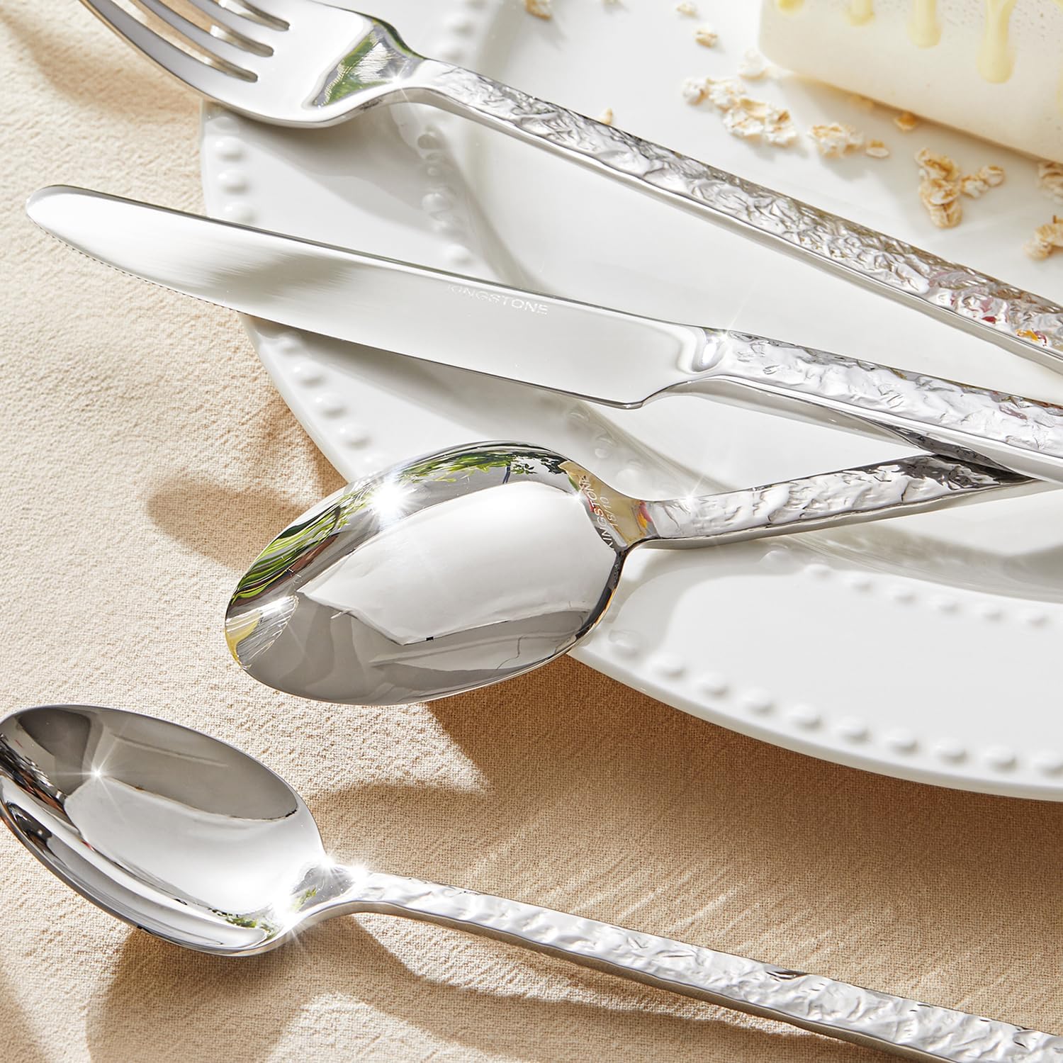 - HEAVY DUTY SILVERWARE SET-Crafted of 18/10 stainless steel for exceptional durability and brilliant shine, each piece is crafted from a single stainless steel ingot for extraordinary weight and seamless line.
