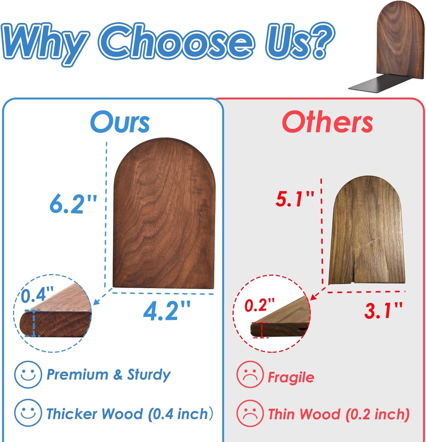 - Natural Black Walnut Craftsmanship: Crafted from black walnut with unique natural grain patterns—no veneers or synthetic dyes, each pair is unique. Thicker wooden bookends are more durable and resistant to drops, adding the breath of nature for your desk.