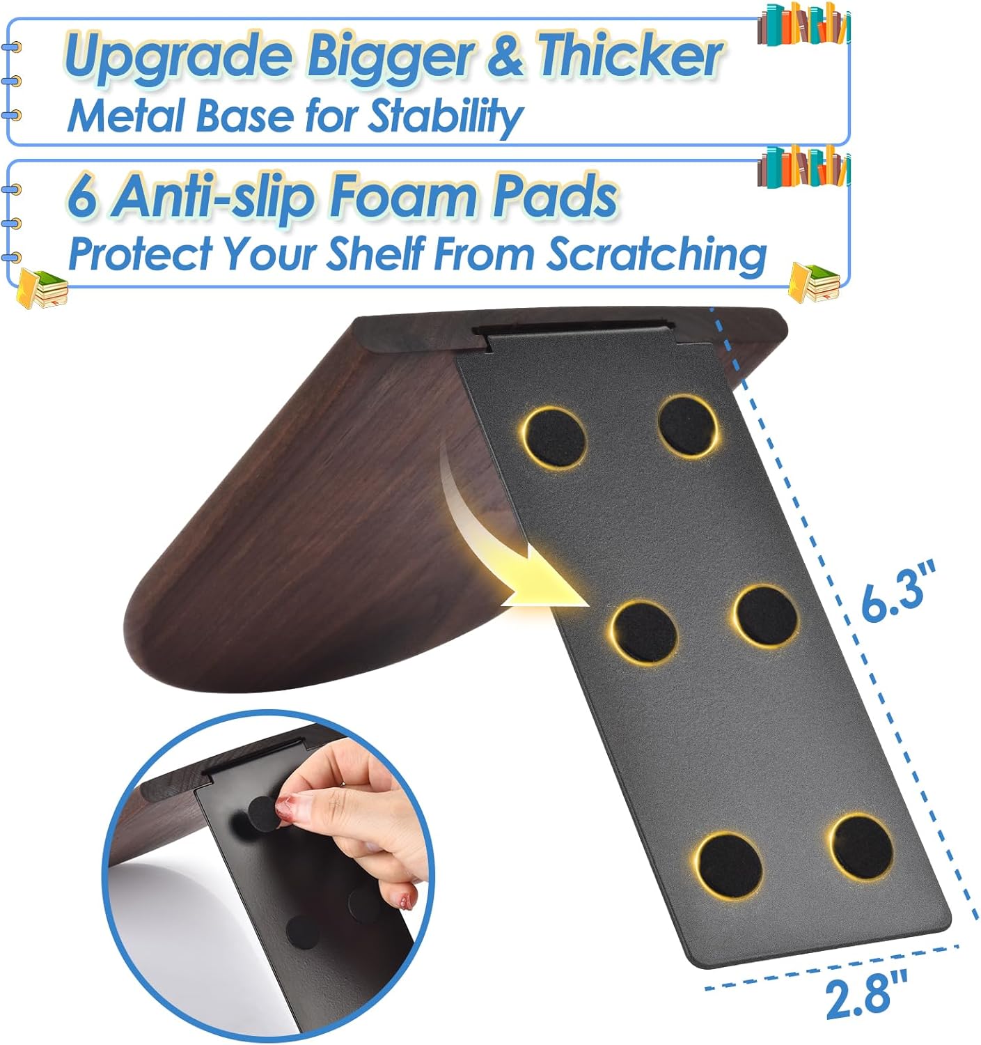 - Enhanced Stability via Research-Backed Design: Our innovative expanded base design increases contact area by 60% versus market, creating rock-solid stability that prevents books from sliding or tipping. Holds large heavy books with no stress.