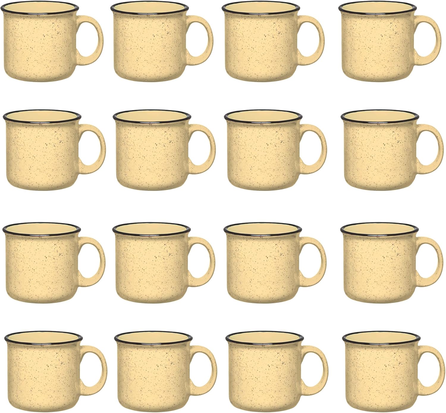 Set of 16 Ceramic Campfire Mugs – 15 Oz, Yellow – Coffee & Tea Cups for Home, Work, Travel, Camping – Customizable, Great for DIY, Events, Companies