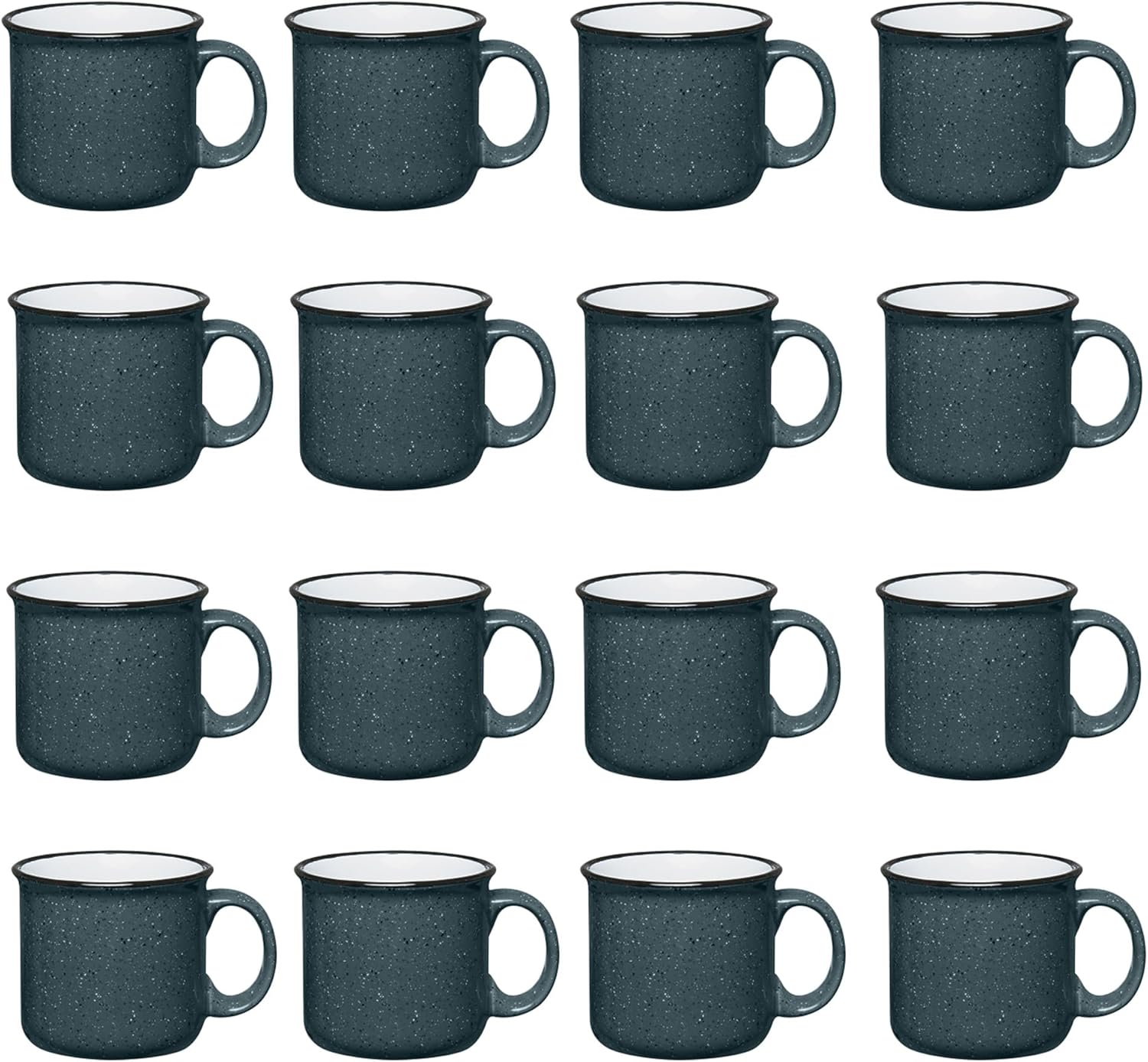 Set of 16 Ceramic Campfire Mugs – 15 Oz, Gray – Coffee & Tea Cups for Home, Work, Travel, Camping – Customizable, Great for DIY, Events, Companies