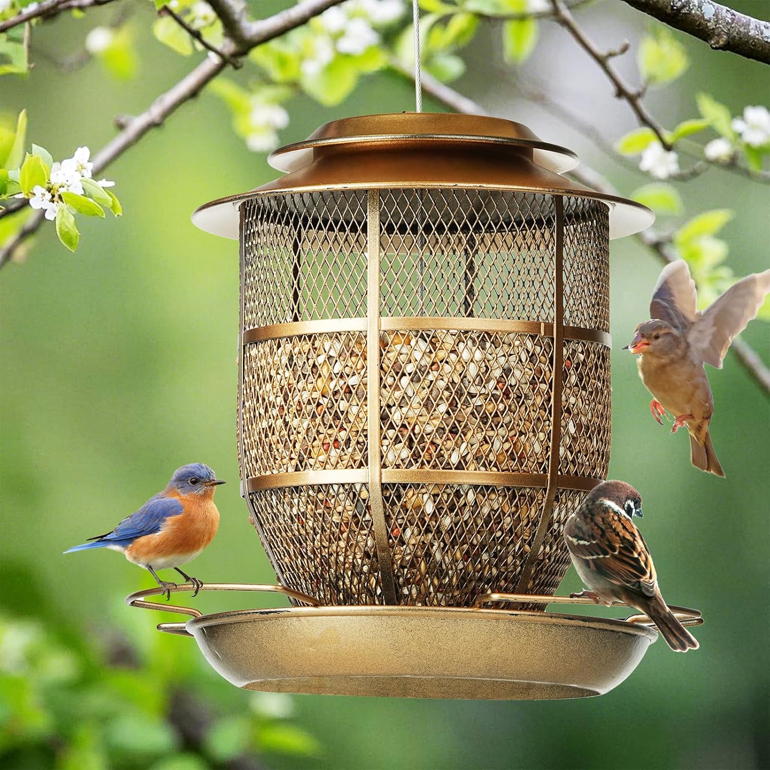 - Multi Scene Suspension: The metal funnel appearance of the bird feeder enhances the beauty of outdoor decoration. The bird feeder can be hung in gardens, balconies, courtyards, or as a gift for bird lovers.
