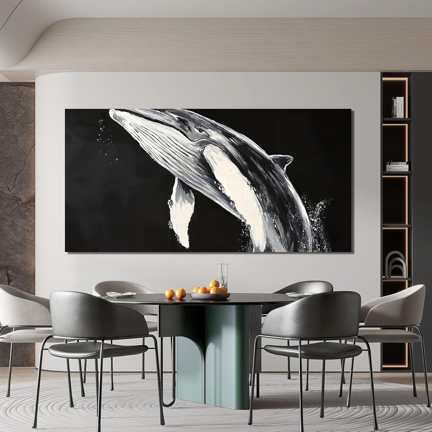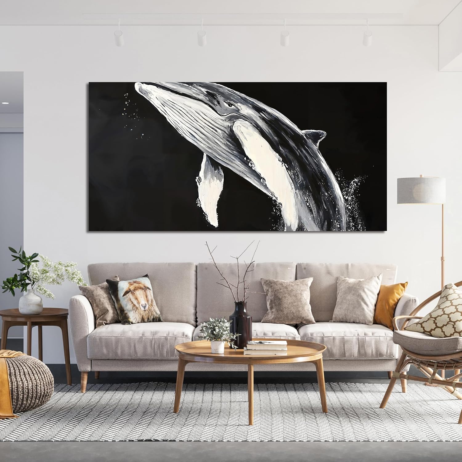 Canvas Wall Art Decor Black and White Wall Art Prints Large Modern Wall Art for Living Room Large Canvas Art Wall Decor Minimalist Whales Decorations Artwork for Walls Bedroom Office Decor 24" X 48"