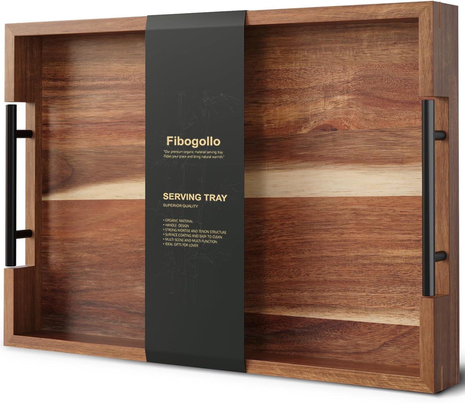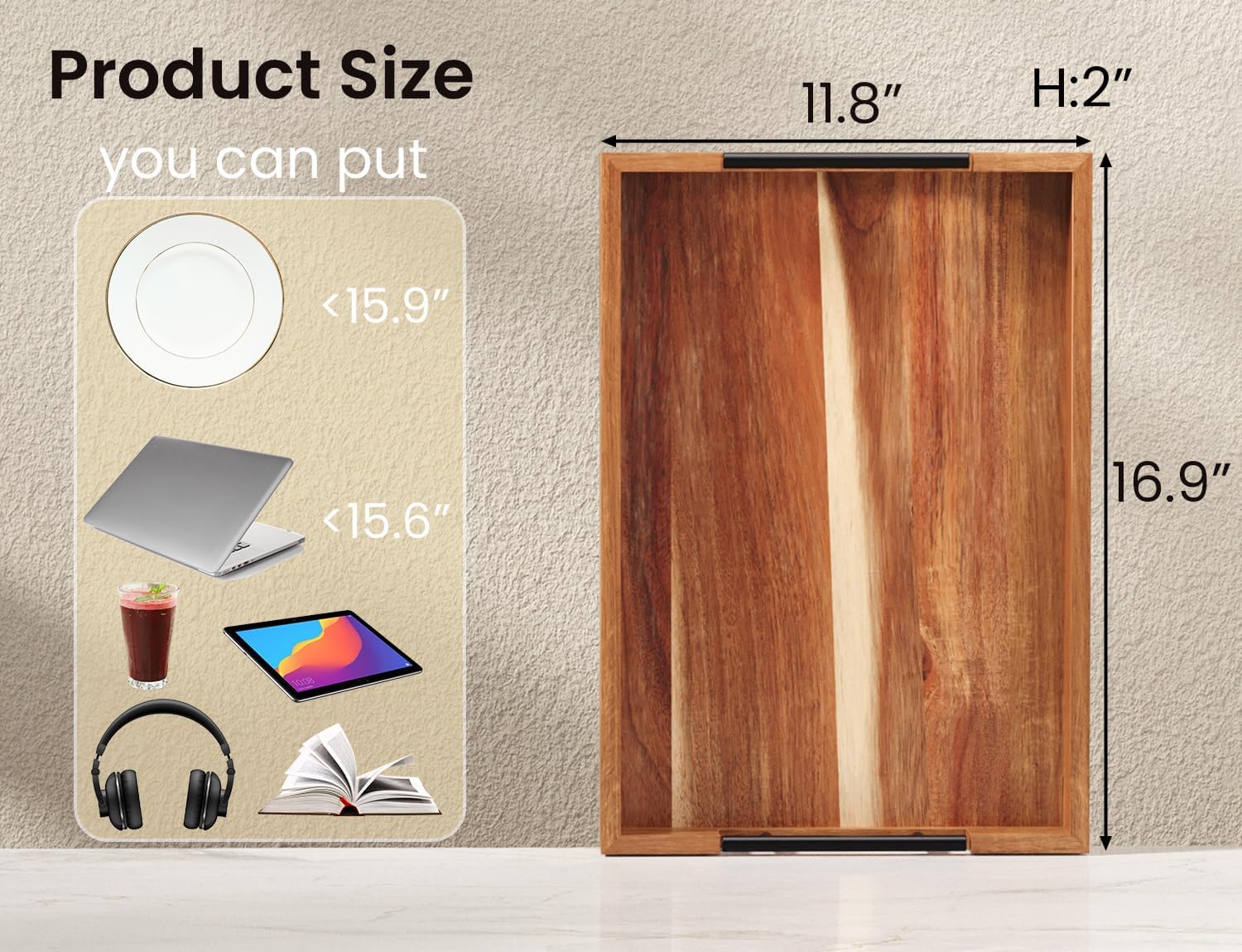 - serving tray, serving tray with handles acacia wood decorative coffee table ottoman tray food drinks and breakfast dinner tray in bed serving trays for party rectangular tray for living room bedroom and Kitchen