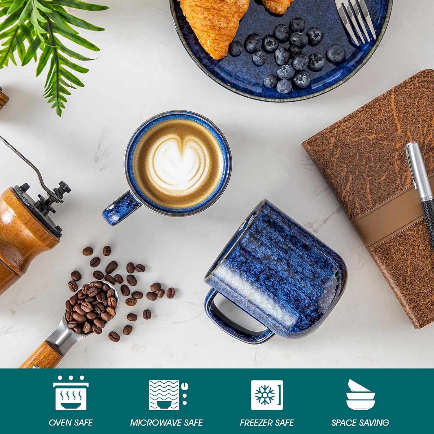 - ăDishwasher-Safe & Durableă: Fired at 2372°F+ for a fully fused, non-porous glaze (vs. standard 1832°F), this coffee mugs set of 6 resists high-pressure water and heat. The low-absorption ceramic body (<0.3%) prevents detergent residue buildup, ensuring easy cleaning and long-lasting use.
