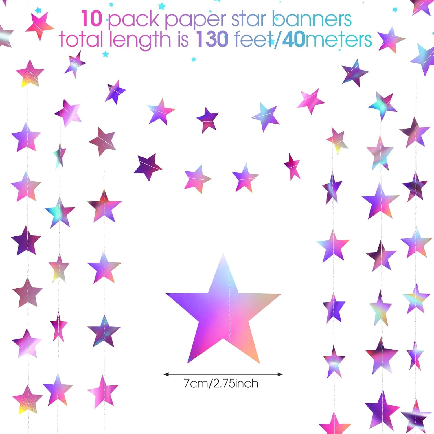 - Package includes: 10 x star paper garlands, each garland is 13 feet/ 4 meters long, total length is 130 feet/ 40 meters; Enough quantity can reach your party decoration needs