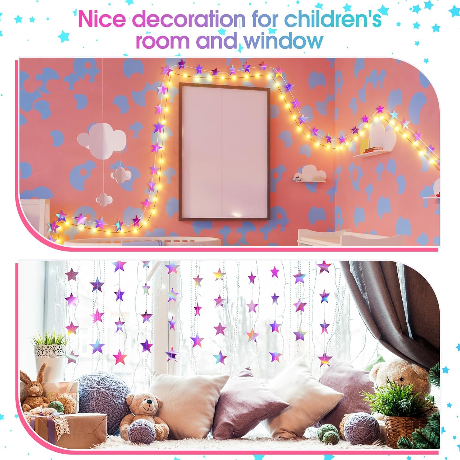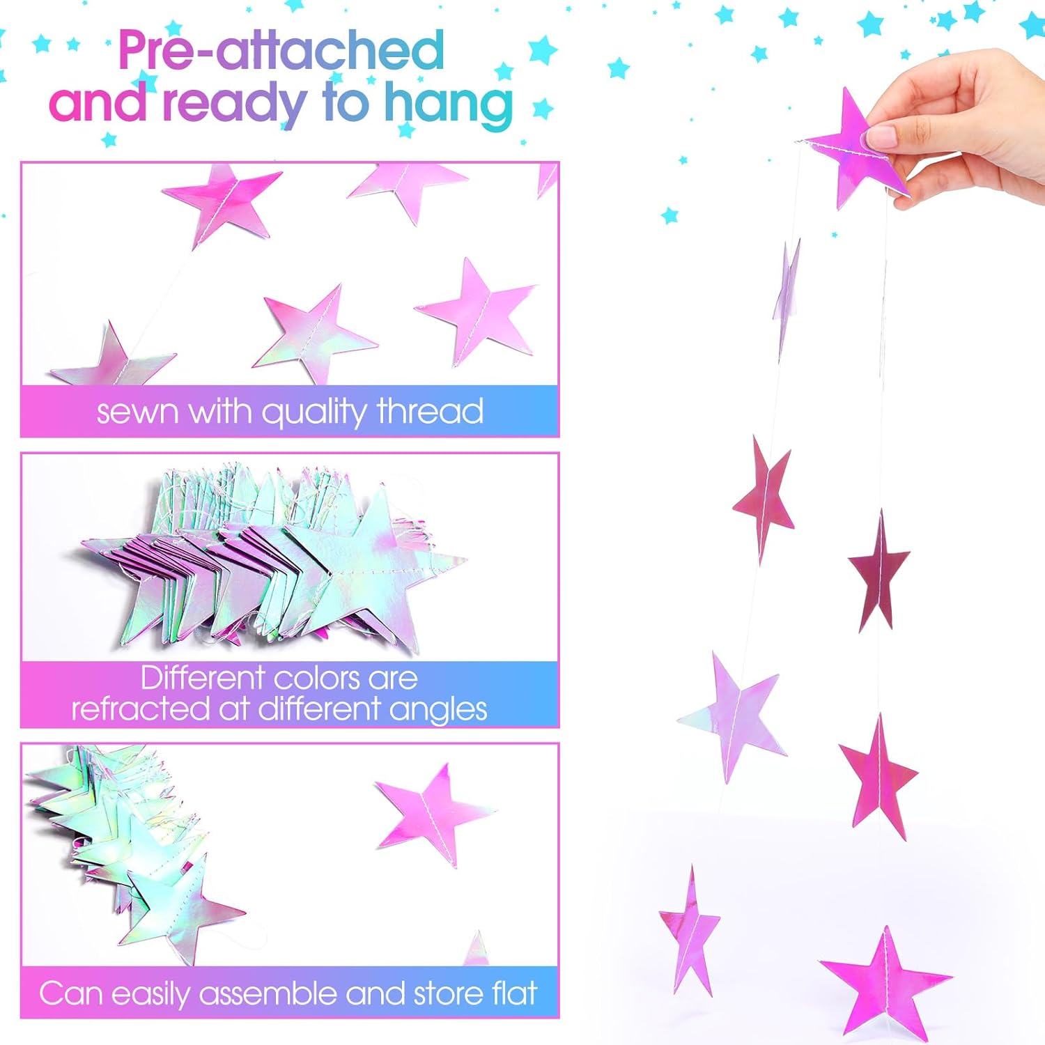 - Easy to install: unrolling the star garland, adjust the distance of star according to your needs and hanging on the wall or other place
