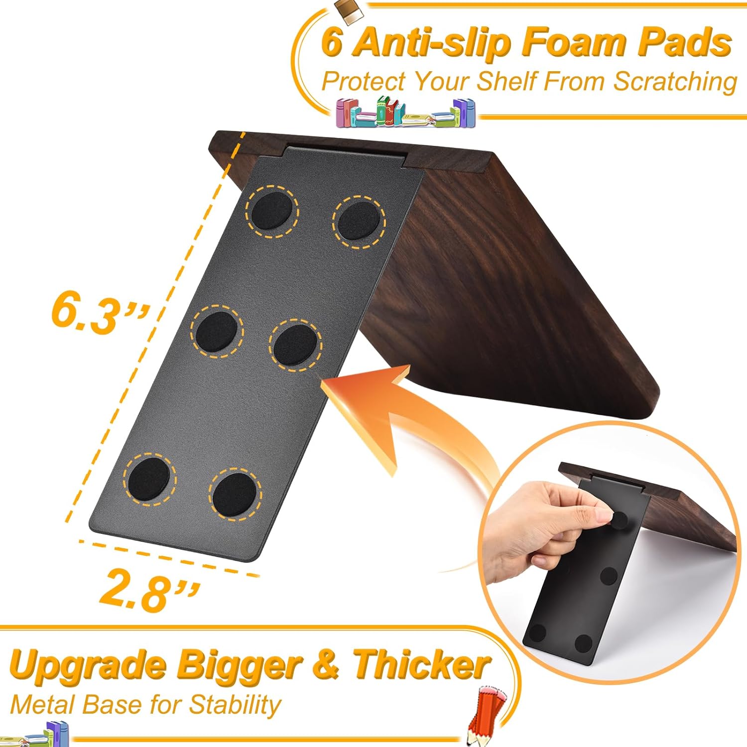 - Non-Slip Foam Pads, Protects Shelves & Stops Sliding: 6 heavy-duty anti-slip pads on each bookend grip surfaces tightly, preventing scratches on glass/wooden shelves while keeping books perfectly aligned. Say goodbye to noisy book shifts or constant readjusting!