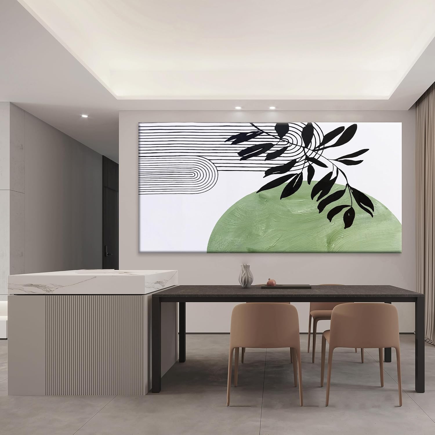TAIJXAGSG Large Boho Green Wall Art For Living Room Century Modern Canvas Art Wall Decor Picture Painting Aesthetics Botanical Abstract Art Prints Bedroom Office Wall Hanging Decor 29x58 In