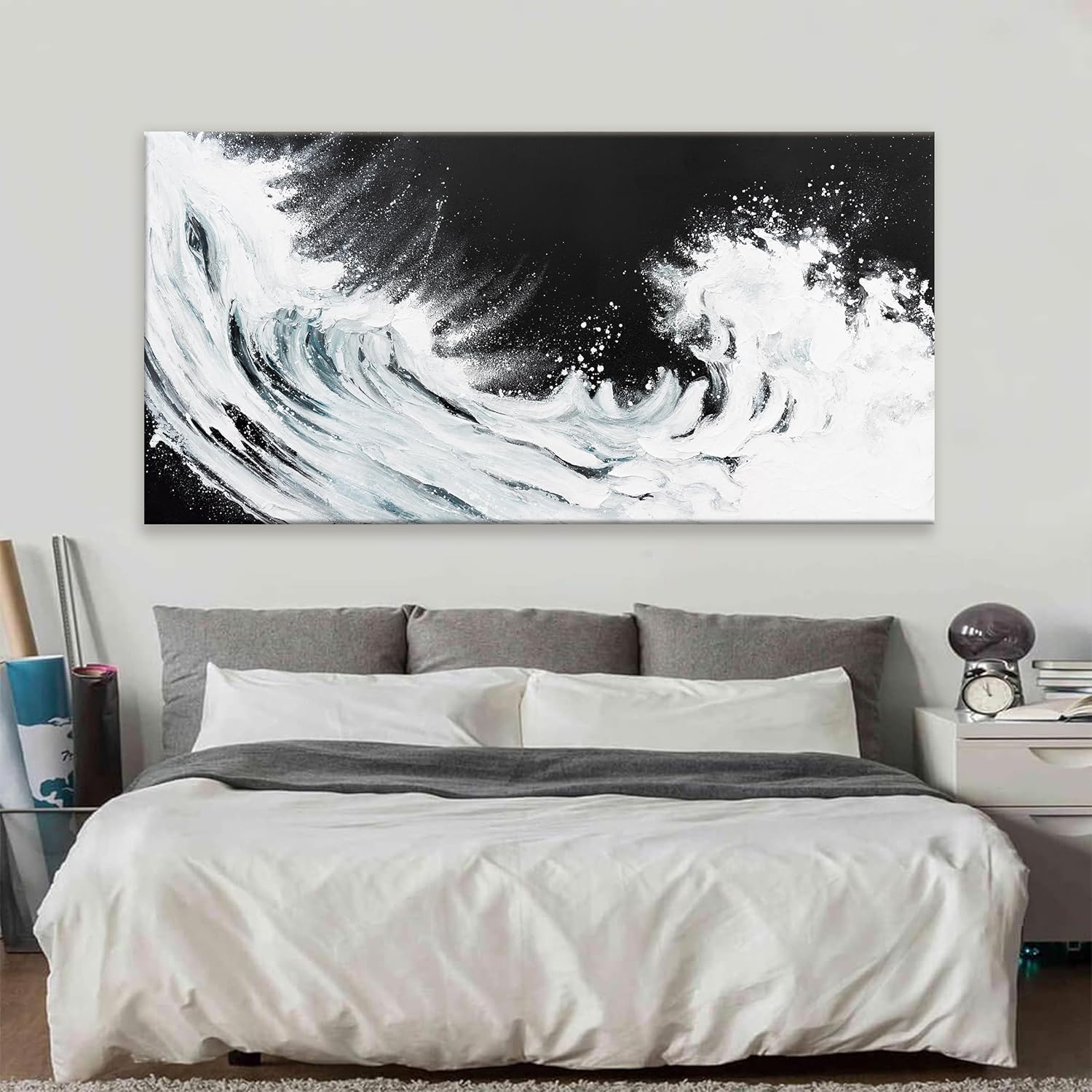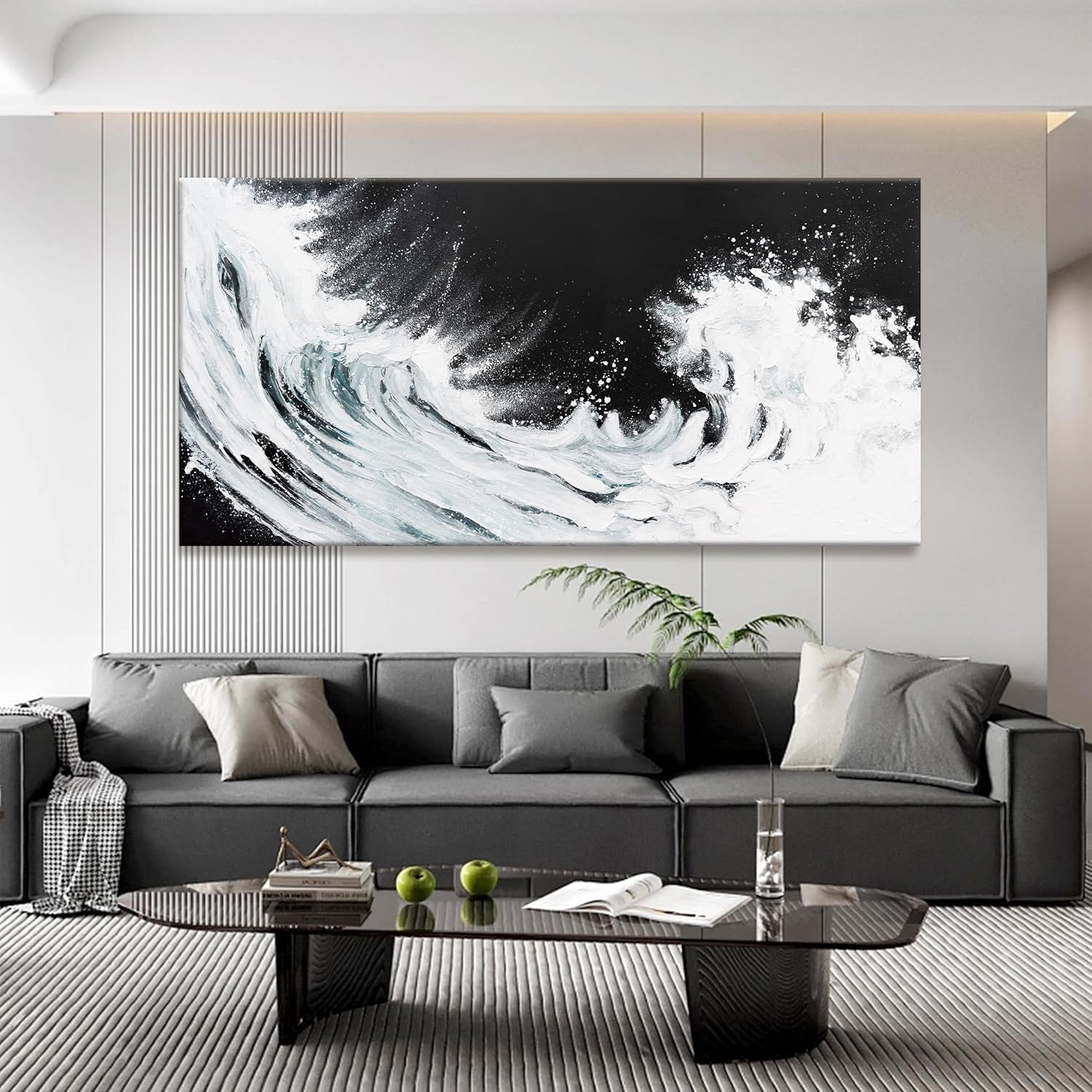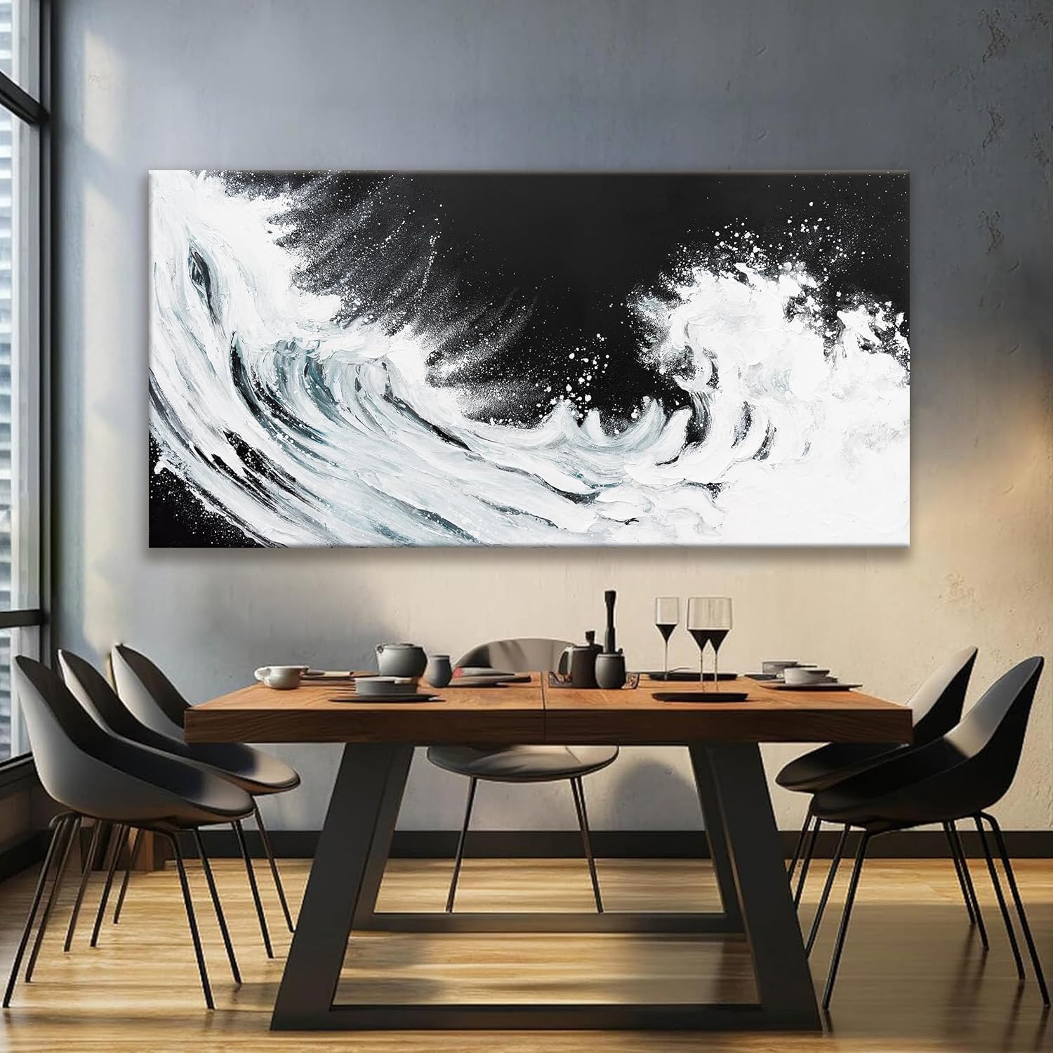 TAIJXAGSG Abstract Wall Art Canvas Art Wall Decor For Living Room Decorations Large Black And White Abstract Wall Decor White Ocean Waves Wall Art For Home Bedroom Kitchen Office Artwork 29x58 Inch