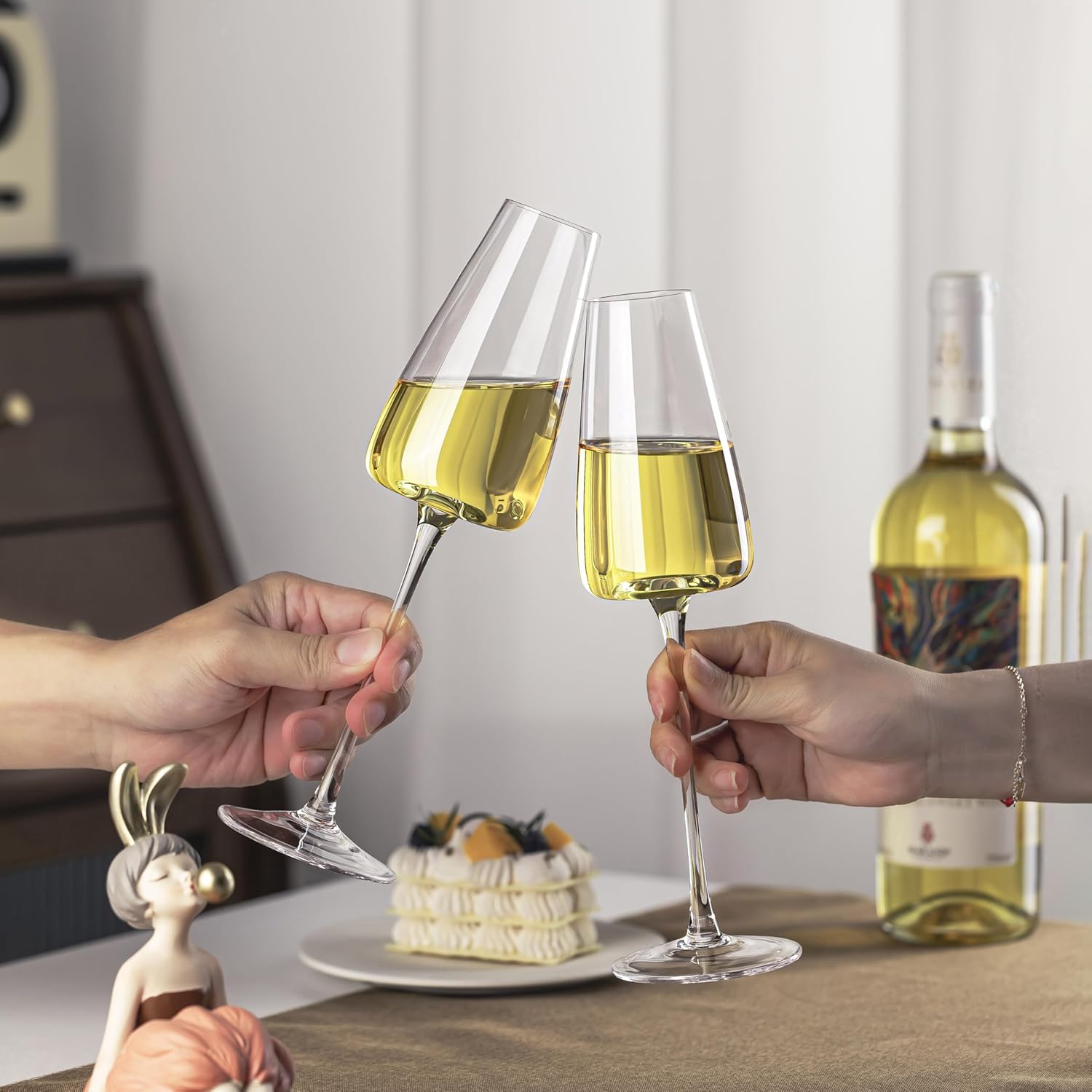 - BEAUTIFUL HOLIDAY GIFT: This glass champagne flutes set is suitable for any occasion - such as weddings, anniversaries, Christmas, or any special occasions. Whether you want to use them as wedding champagne flutes or use them as gifts for friends, our crystal champagne flutes can be used to celebrate important moments in life.