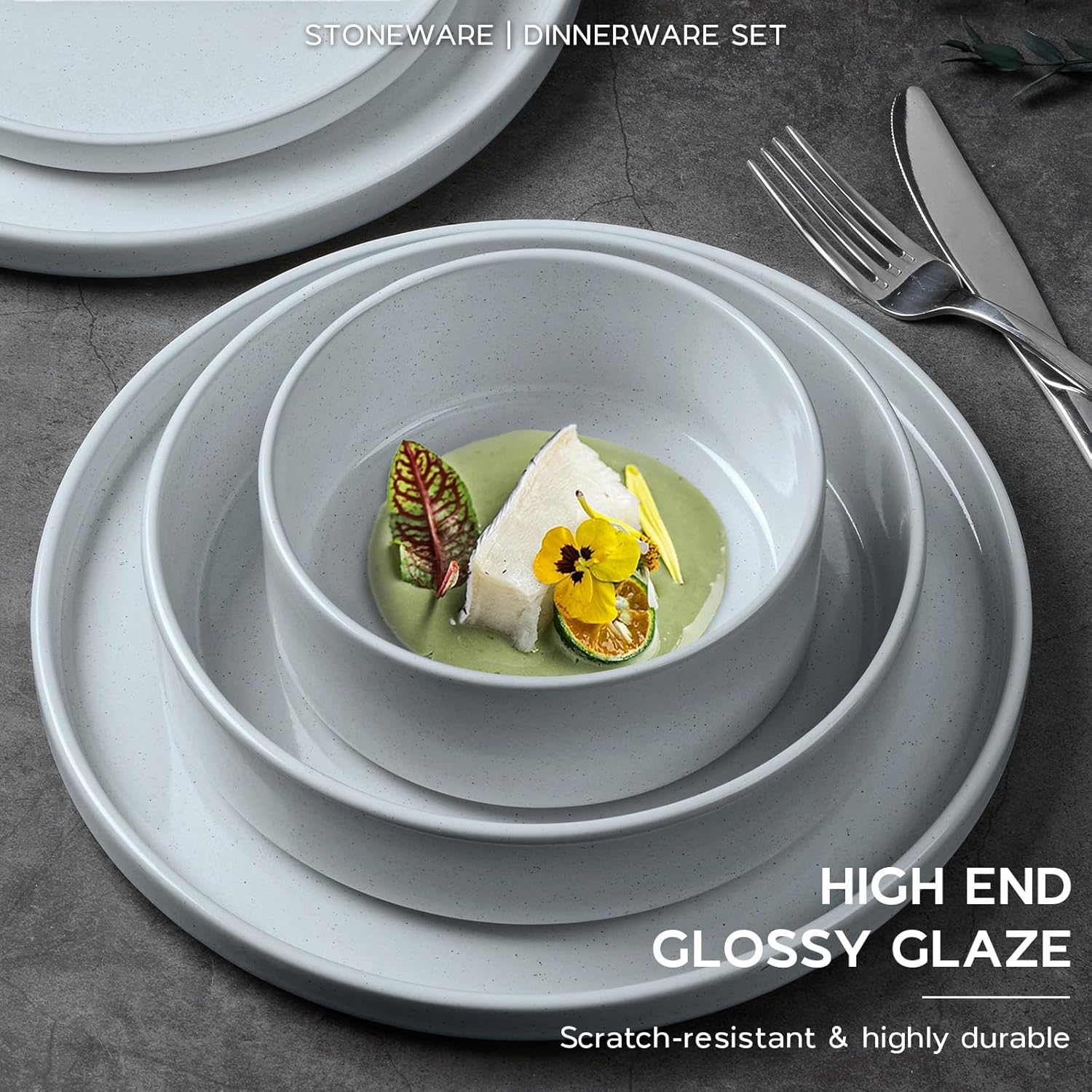 Onader Dinnerware sets, 24 Piece Plates and Bowls, Stoneware Kitchen Dinner Dish Set for 6, Ceramic Speckled Dinnerware with Pasta Bowl - Slate Gray