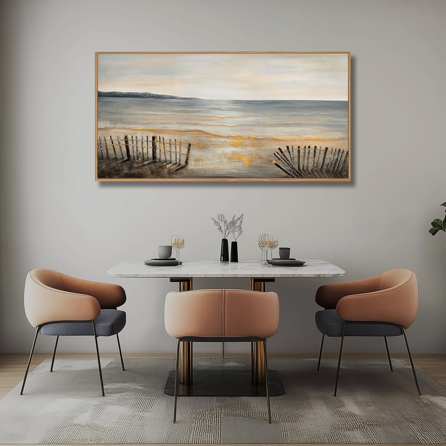 Yuaxker Ocean Wall Art Grey and Black Wall Decor Framed Canvas Painting Beach Aesthetic Artwork for Living Room Bedroom Dining Room Office Home Decor 24x48 Inch