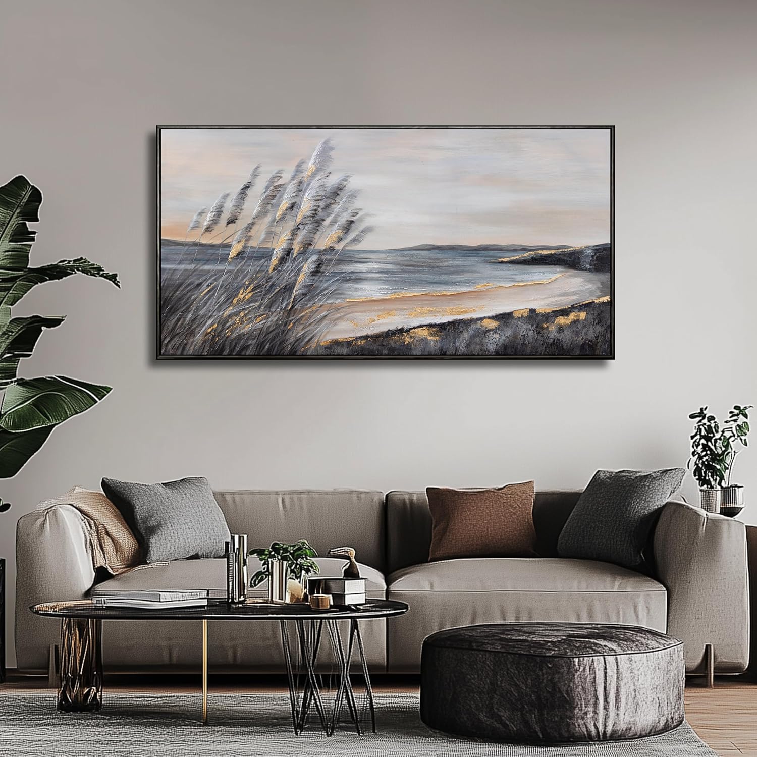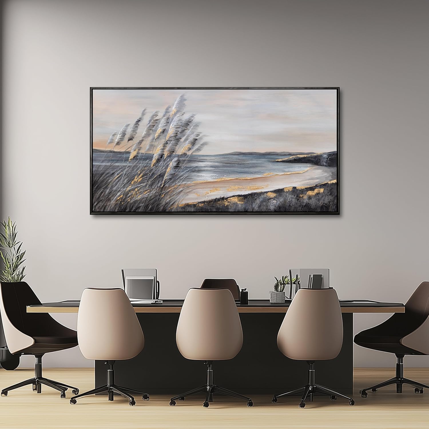 Yuaxker Ocean Wall Art Grey and Black Wall Decor Framed art Aesthetic Coastal Canvas Painting for Living Room Bedroom Dining Room Office Home Decor 24x48 Inch