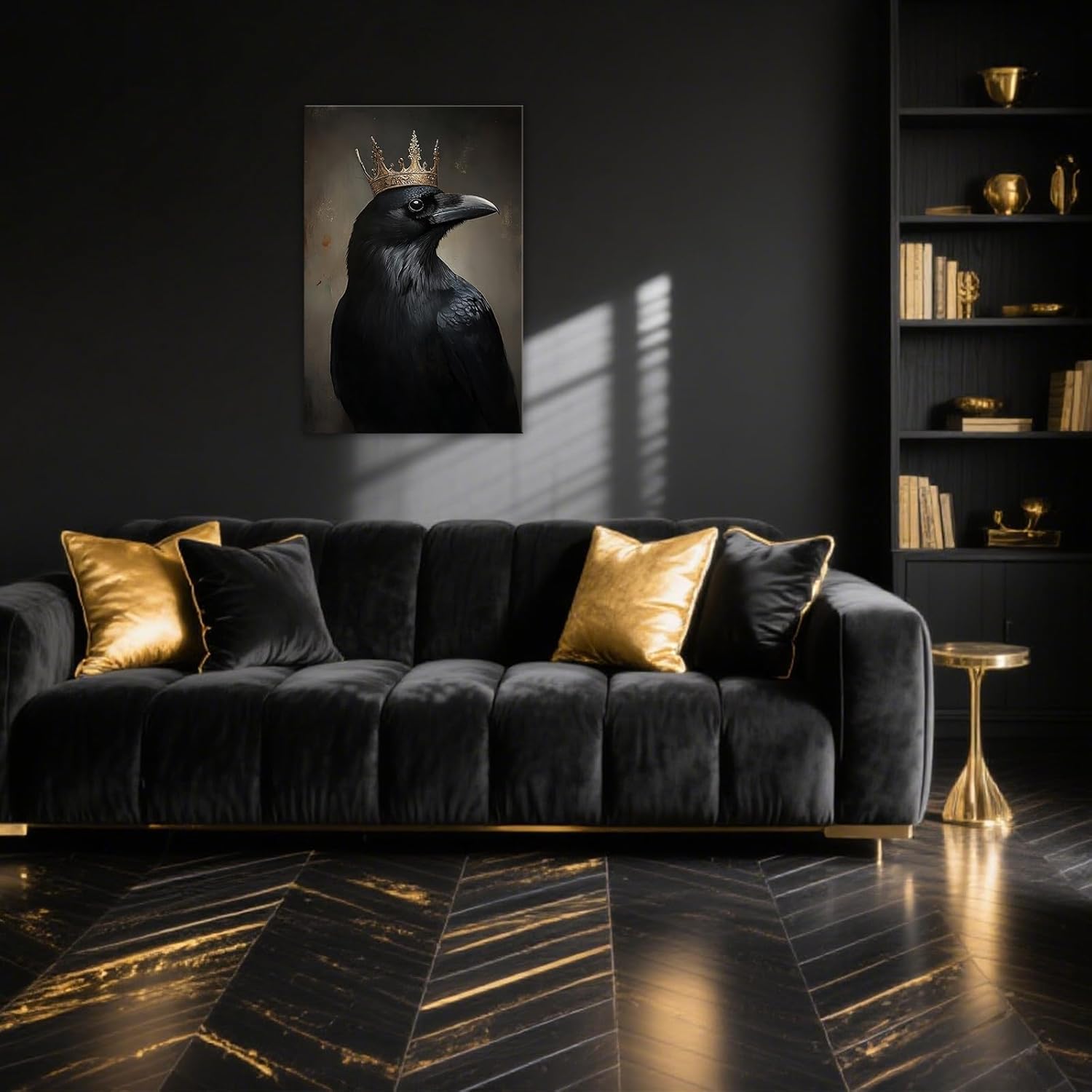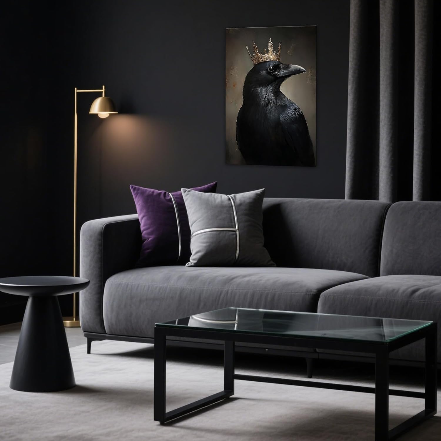 OAAPITI Raven King Wall Art Mysterious Black Bird Painting Dark Gothic Animal Canvas Print for Living Room Bedroom Home Office Inspirational Decor(Artwork-8,24"x36")