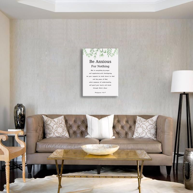 Christian Poster Philippians 4:6-7 Inspirational Canvas Wall Art Painting Print Office Decor Framed Be Anxious for Nothing Motivational Quotes for Wall Art Home Living Room Decor[18" W X 24" H]