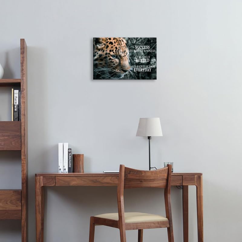 Leopard Canvas Wall Art Success Entrepreneur Quotes Posters Success Is Rented Motivational Wall Decor For Office Living Room Bedroom Office Bathroom Print Framed Ready to Hang [12" W X 18" H]
