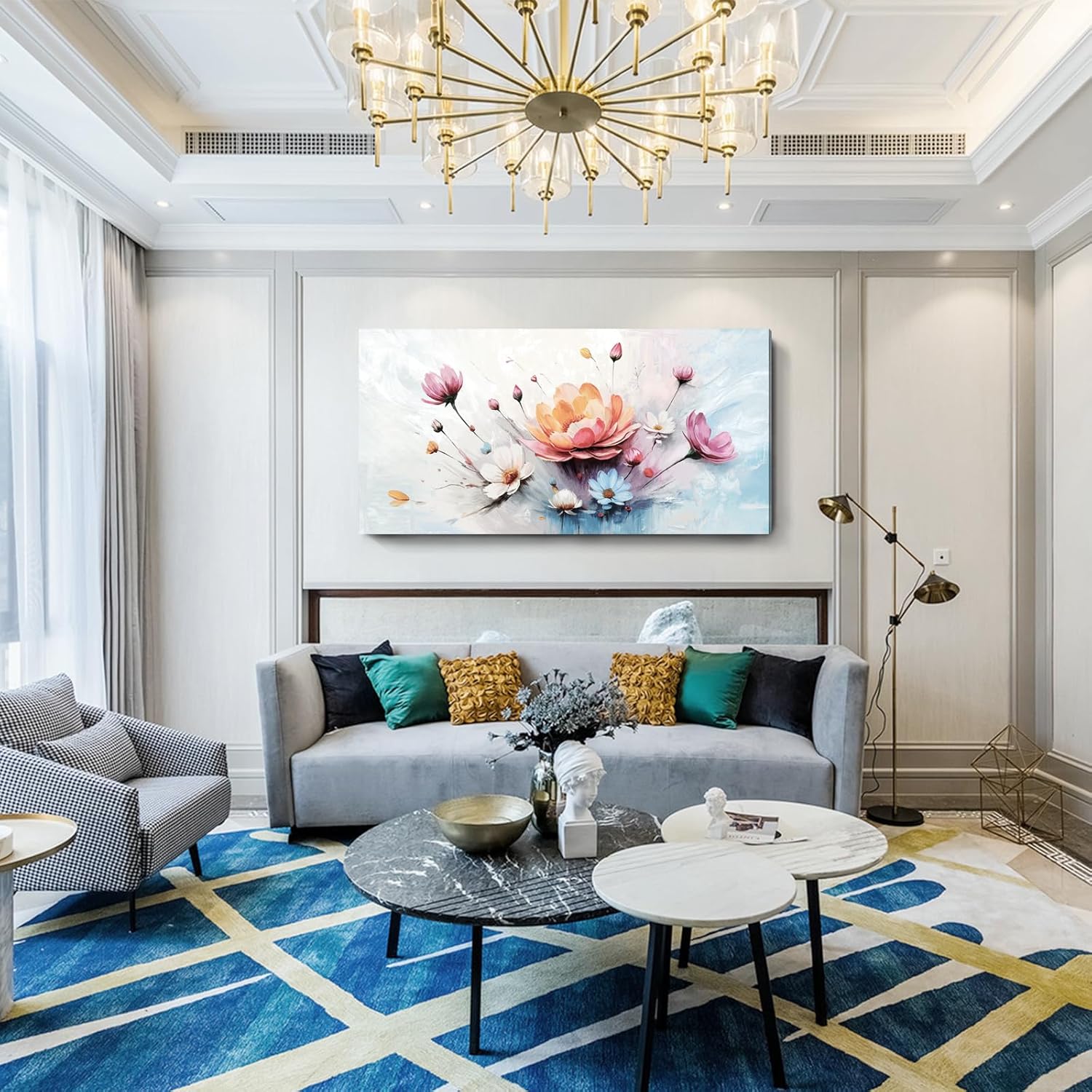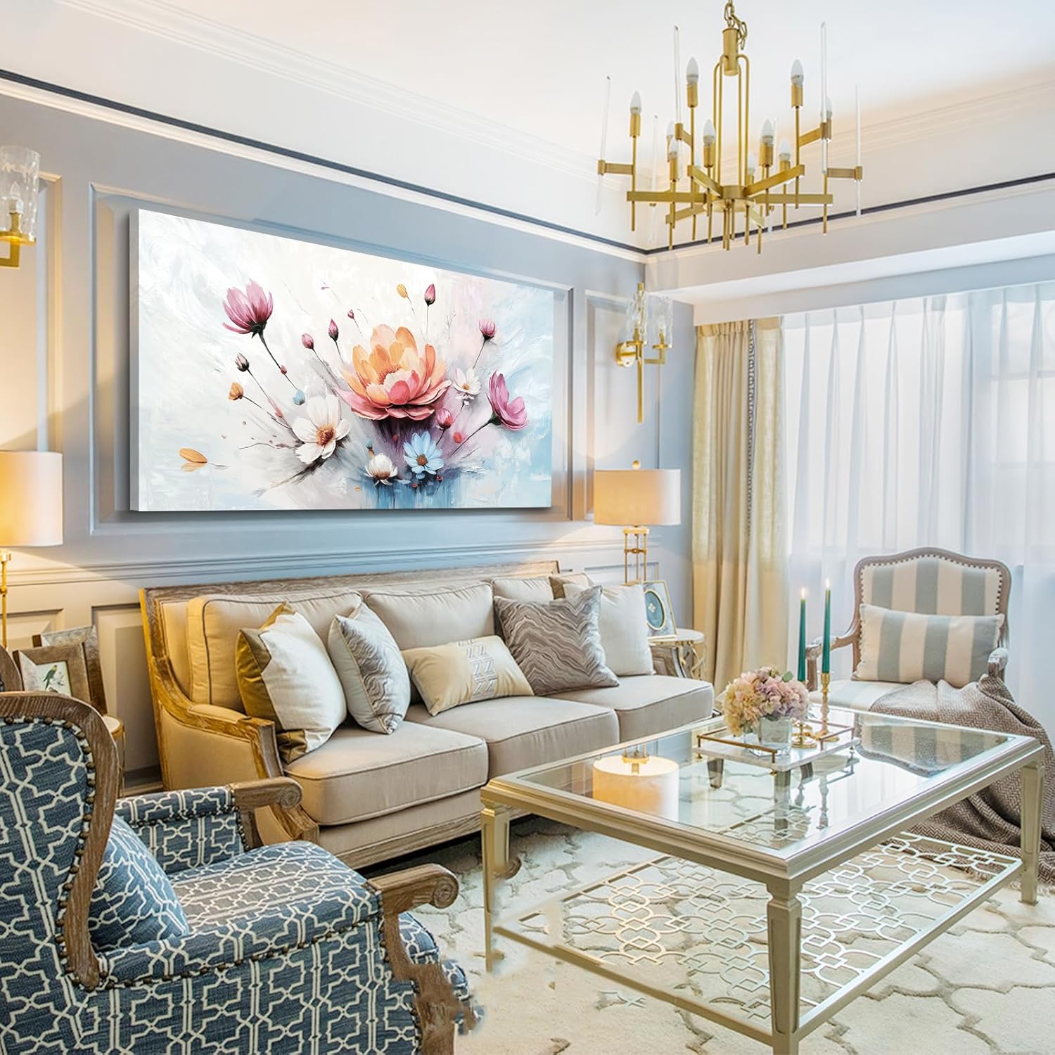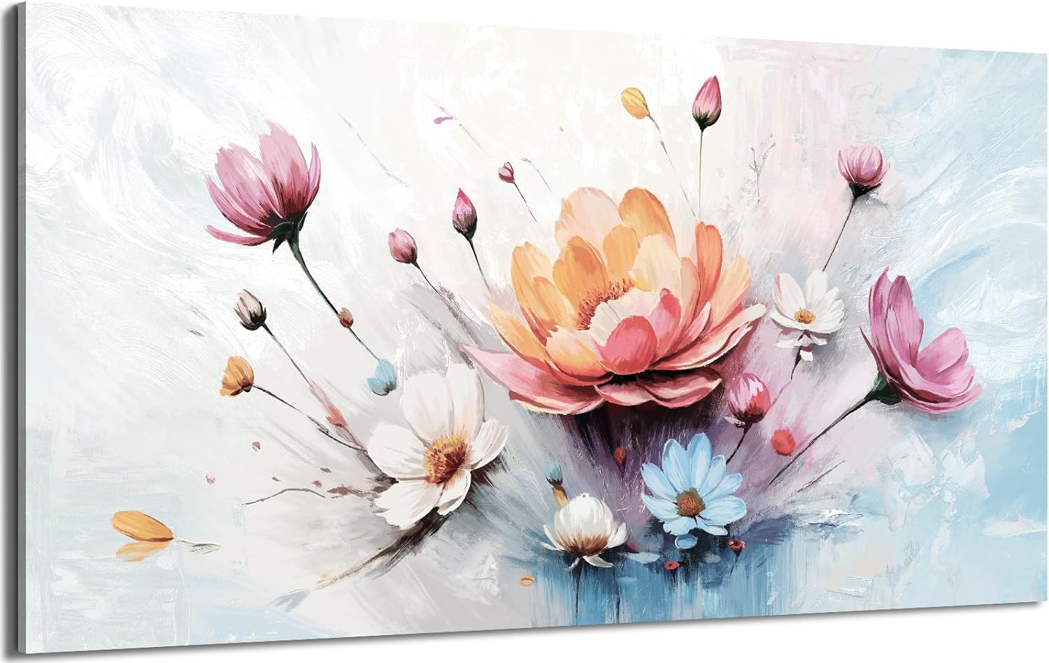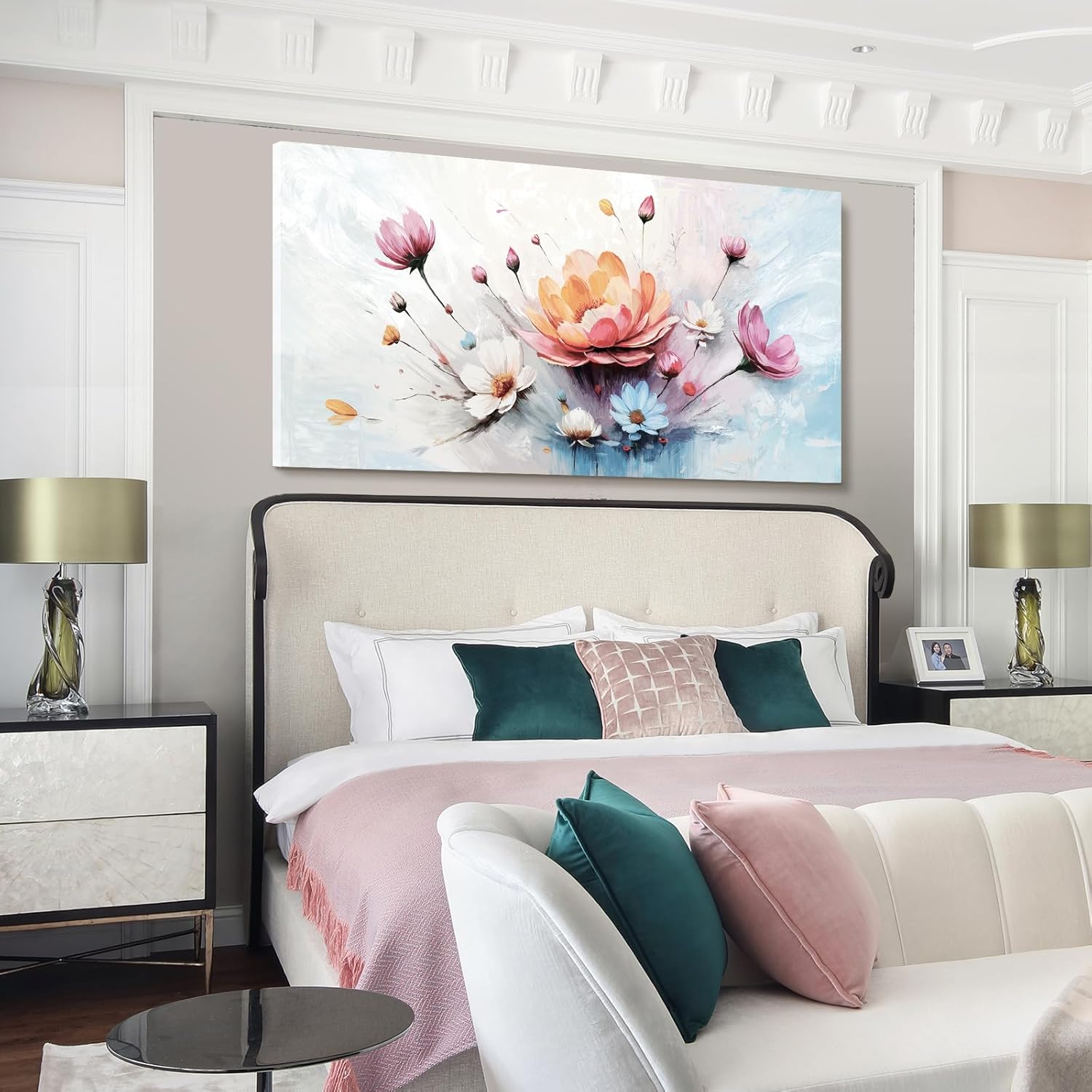 amatop Oversized Wall Art for Living Room Elegant Pink White Blue Floral Art Print Large Abstract Nature Botanical Picture Contemporary Garden Bloom Canvas Decoration Bedroom Office Hallway 58x29 inch