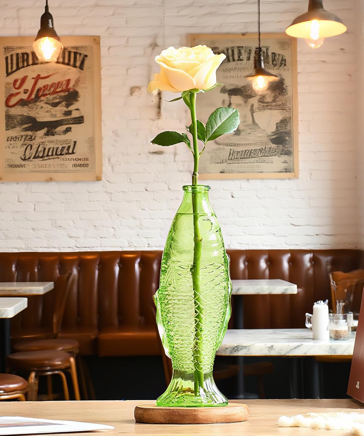 Nacome Fish Vase Glass Plant Terrarium with Wooden Stand,Plant Propagation Station for Home Office Hydroponics Desk Decoration,Unique Gardening Gifts for Plant Lovers Women Mom(Green)