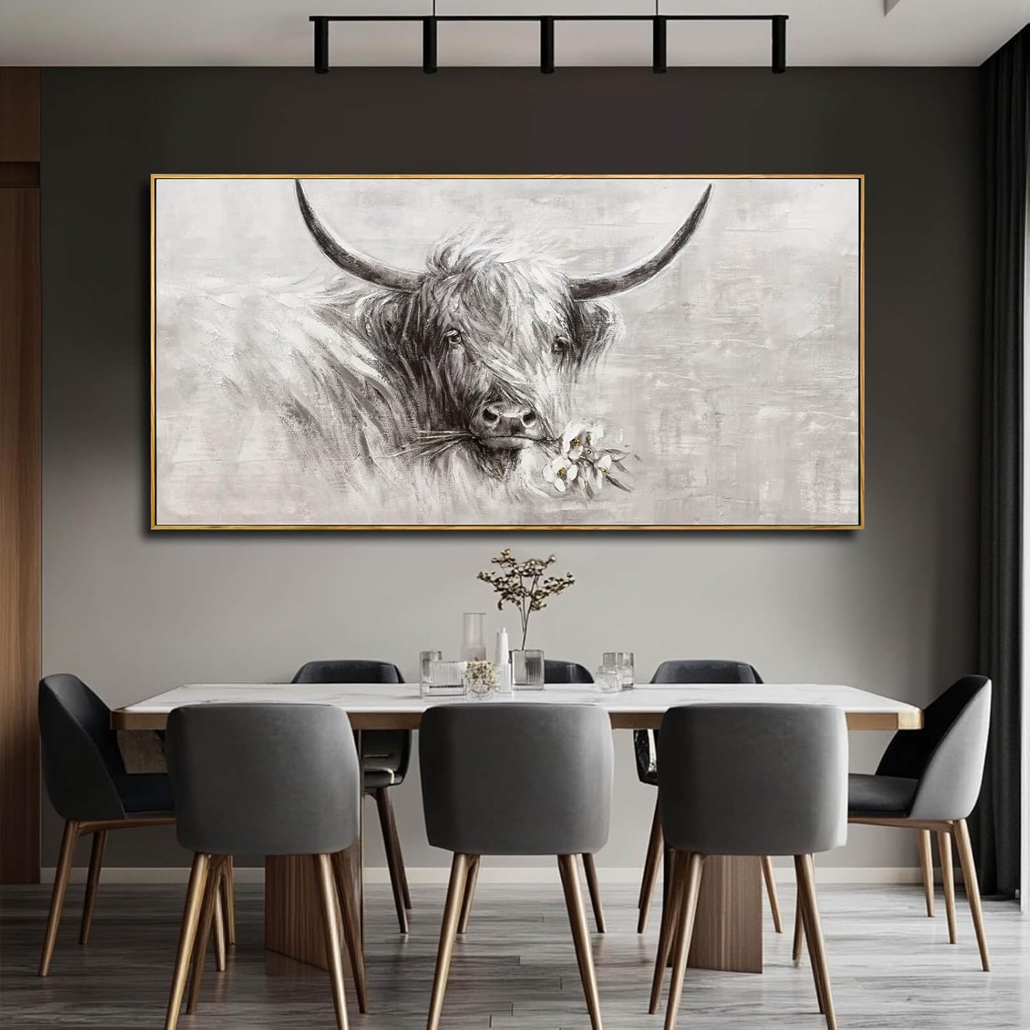 - Canvas wall art size: cow canvas wall art is 29x58, and the product art on the wall brings a different feeling to the space of the house.