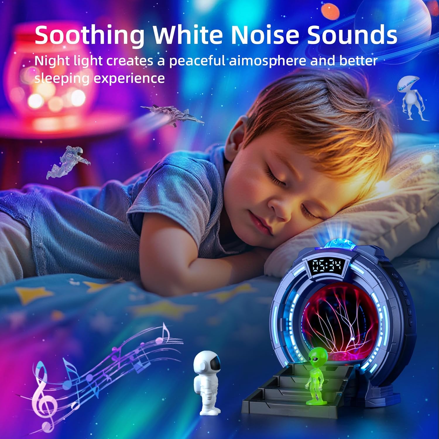 - WHITE NOISE SOUND MACHINE: With 8 popular white noises built into this Stargate projector, the gentle sound of the White Noise Sound Machine combines with the toddler-friendly RGB LED night light to create an unforgettable experience that will keep everyone at ease. It's both relaxing and soothing as you try to fall asleep or meditate. Whether you're an adult or a child, this fun and versatile Stargate nightlight projector will help you sleep soundly.