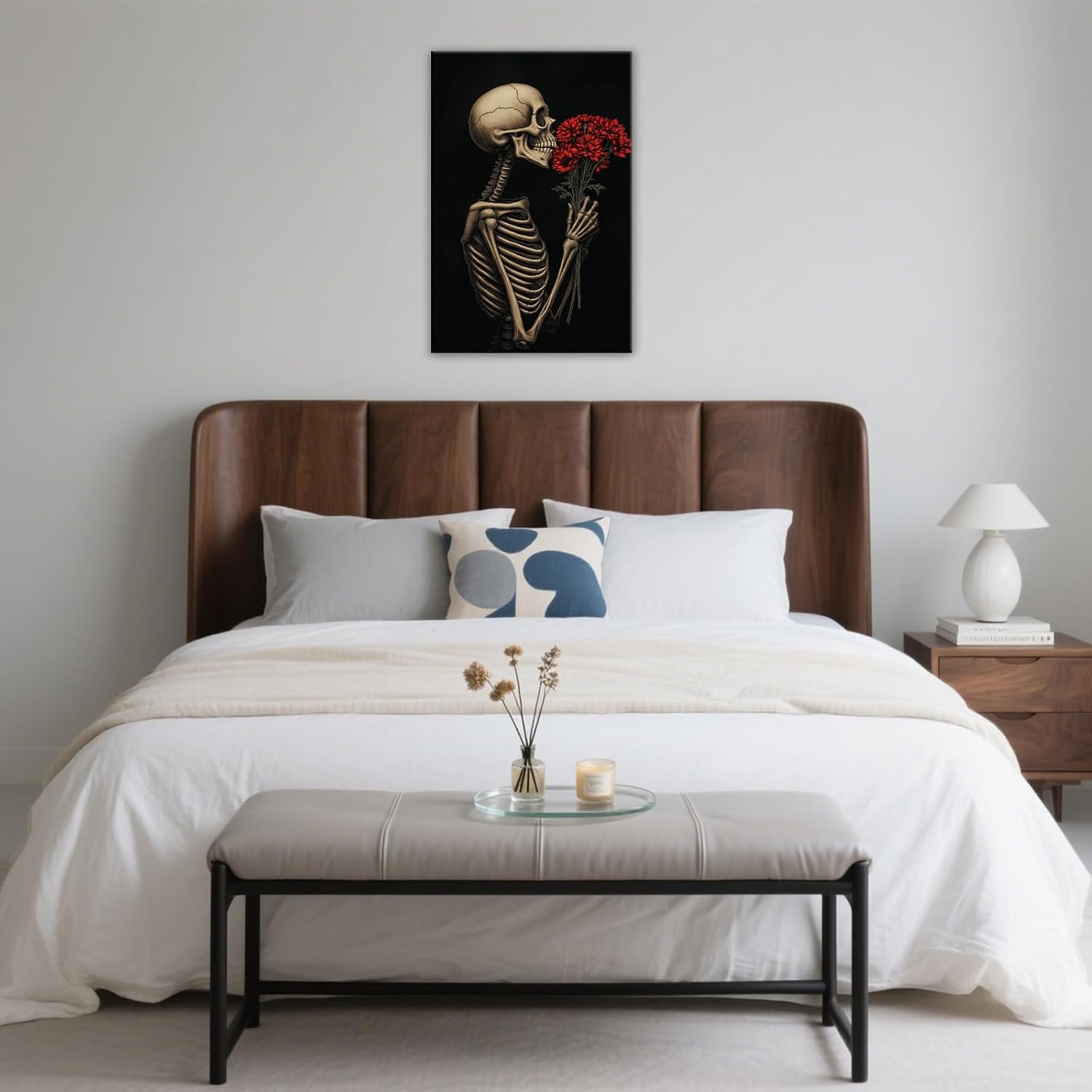 OAAPITI Red Rose Skull Wall Art Dark Themed Skeleton Painting Modern Artwork for Gothic Home Decor(Artwork-5,24"x36")