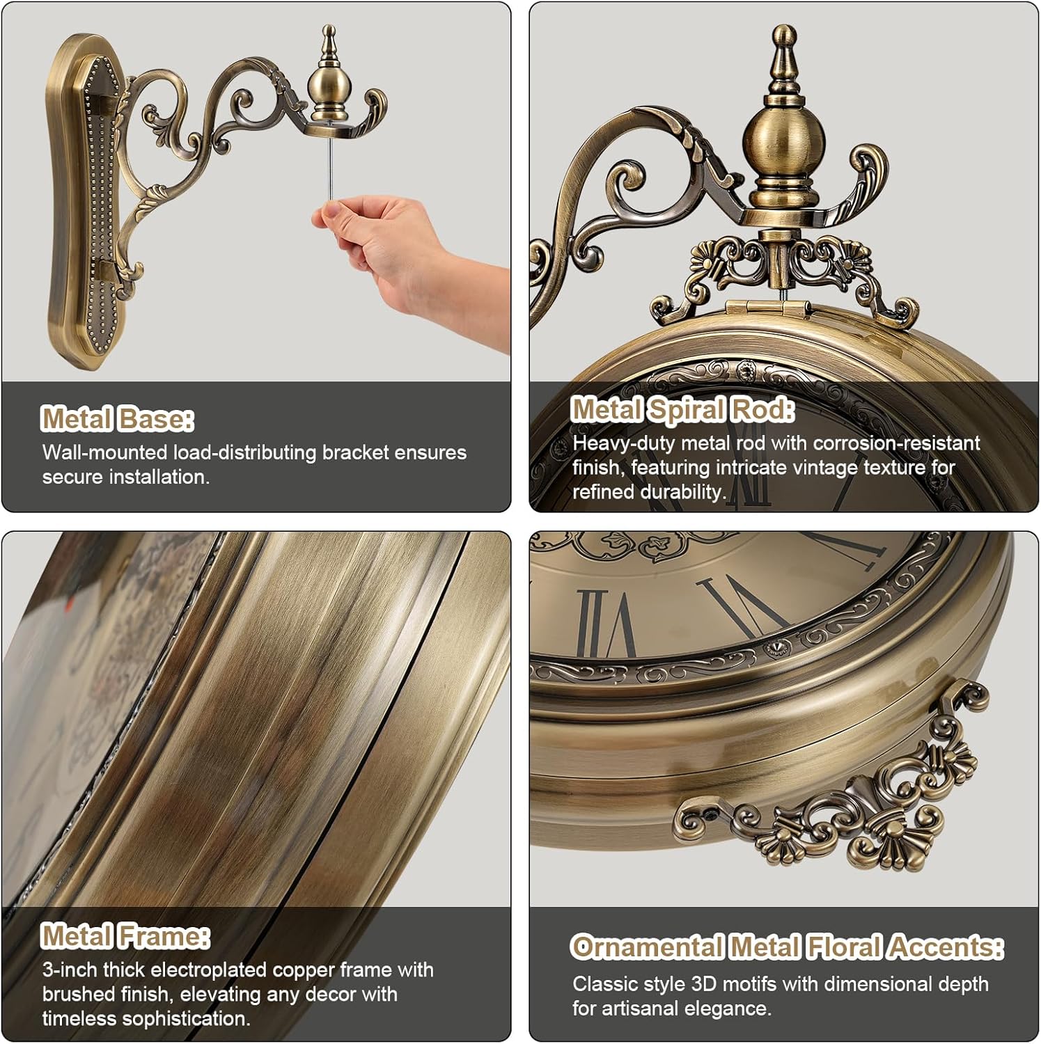 - âď¸ [Premium All-Metal & Glass Construction] Experience unmatched durability and sophistication. Meticulously crafted from solid metal and glass, this wall clock features a robust bronze frame enhanced by a hand-polished, brushed copper plating finish. The glass-covered faces protect the elegant dials, ensuring this antique clock remains a timeless piece of functional art.