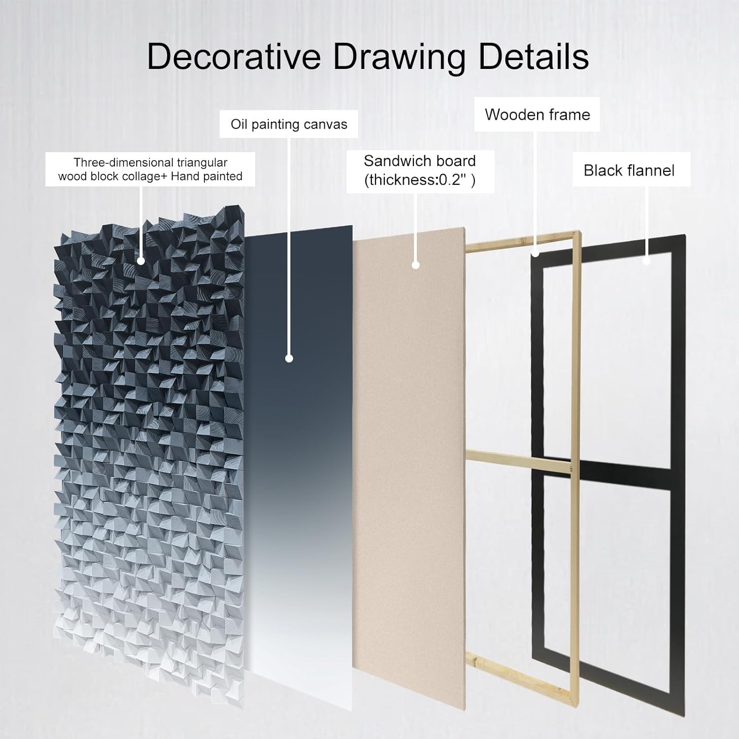 LIUZEYUE - 3D wooden block decoration painting art wall decoration 3D wooden background wall living room bedroom study (blue gray gradient) 27.5"x55.1"