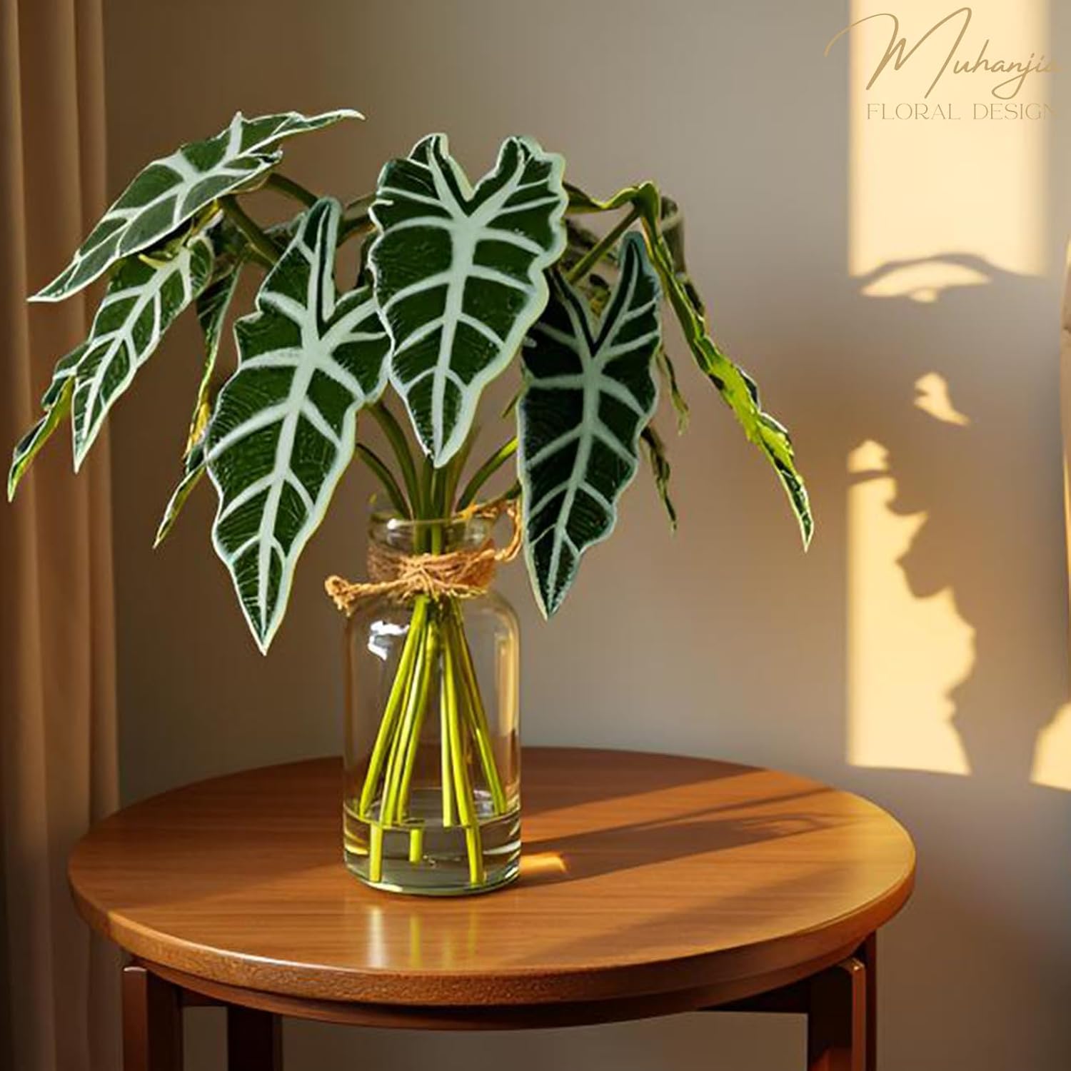- 【Multi-purpose home decor】Whether you're hosting a rustic-themed event or aiming for a nature-inspired decor style, our faux Turtle-back Alocasia leaf arrangement is the perfect foliage decoration to create stunning table centerpieces. It is suitable for decorating the kitchen, bathroom, bookshelf, cabinet, work desk, coffee table, dining table, party venue, wedding venue or farmhouse. Additionally, it makes an excellent gift for housewarming parties and Christmas celebrations.