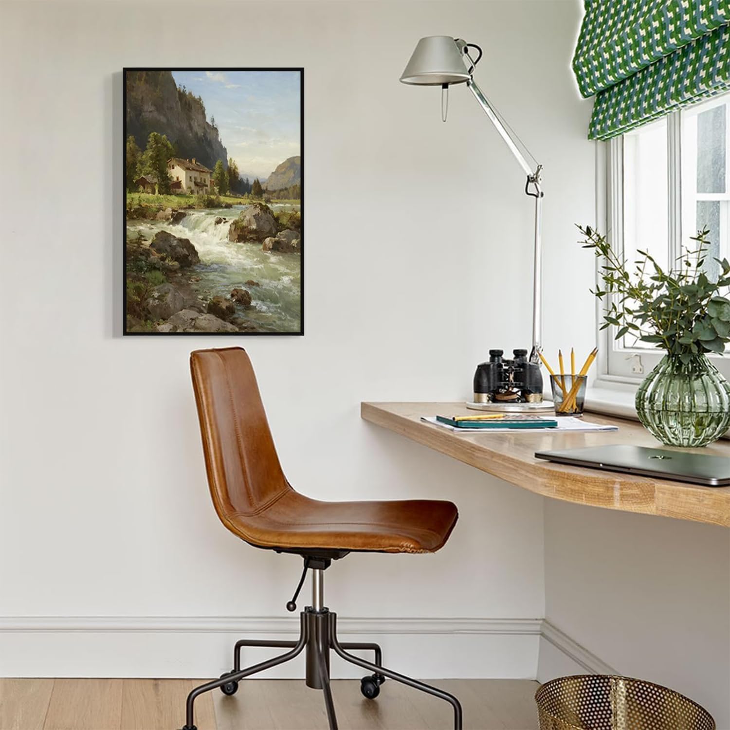 Vintage landscape rural scenery poster art farmhouse cottage wall decor living room kitchen quiet country stream suitable for bedroom bathroom