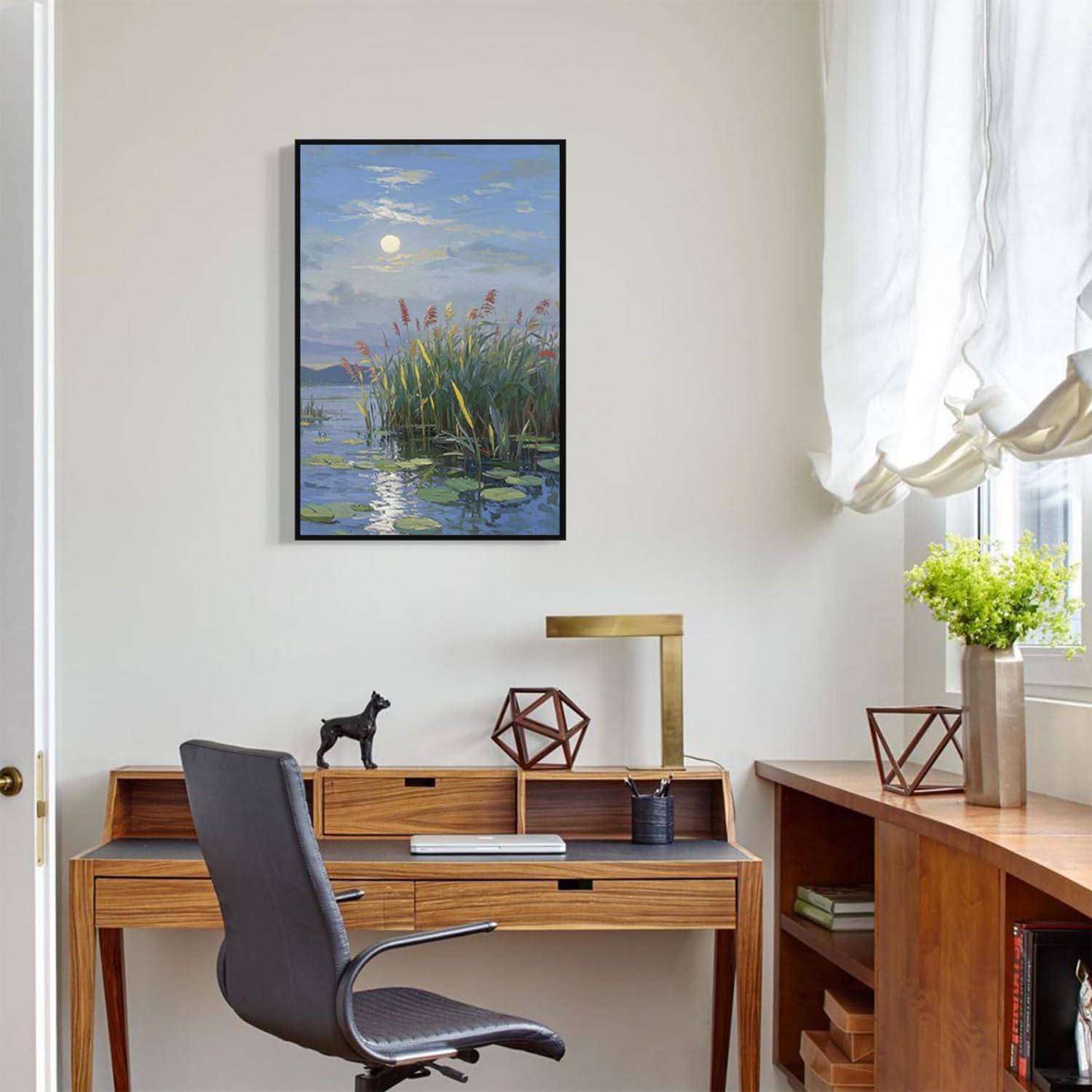Landscape poster artwork art poster natural landscape painting reed marsh under the moonlight suitable for living room bedroom home wall