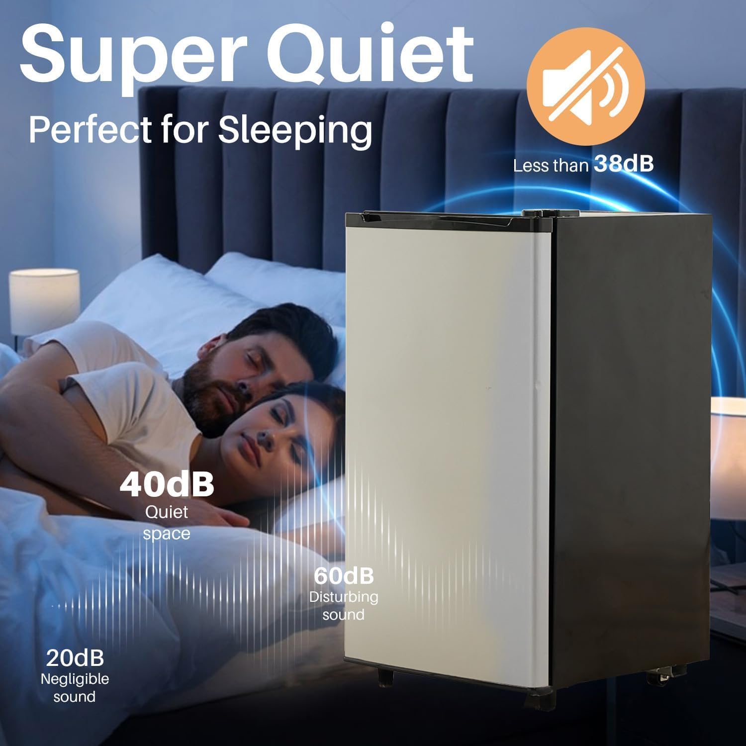 - š Quiet and Functional Design: Operating at a whisper-quiet noise level of 38 dB, the compact refrigerator is perfect for environments requiring minimal noise, such as bedrooms or shared office spaces.